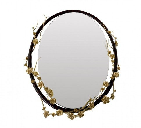 Mahogany Solid Wood Frame embraced with Flower Branches Cast Brass